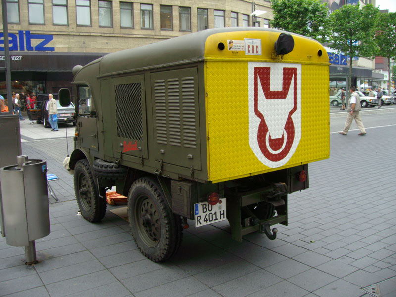 Dieser Unimog wurde als Schneeschleuder gebaut und hat heute noch alle notwendigen Vorrichtungen. Im hinteren Aufbau ist der Motor für den Antrieb der Schneeschleuder eingebaut. Der Antrieb der Schneeschleuder erfolgte über eine Antriebswelle unterhalb des Fahrzeugs nach vorne zur Schneeschleuder.